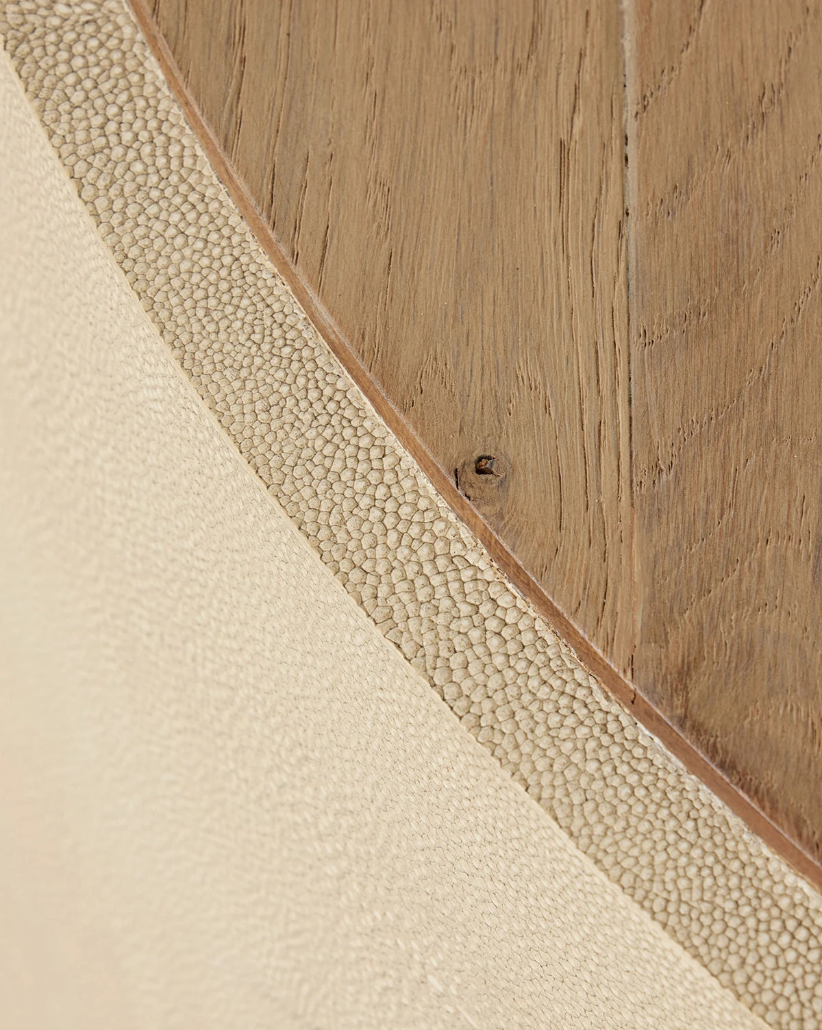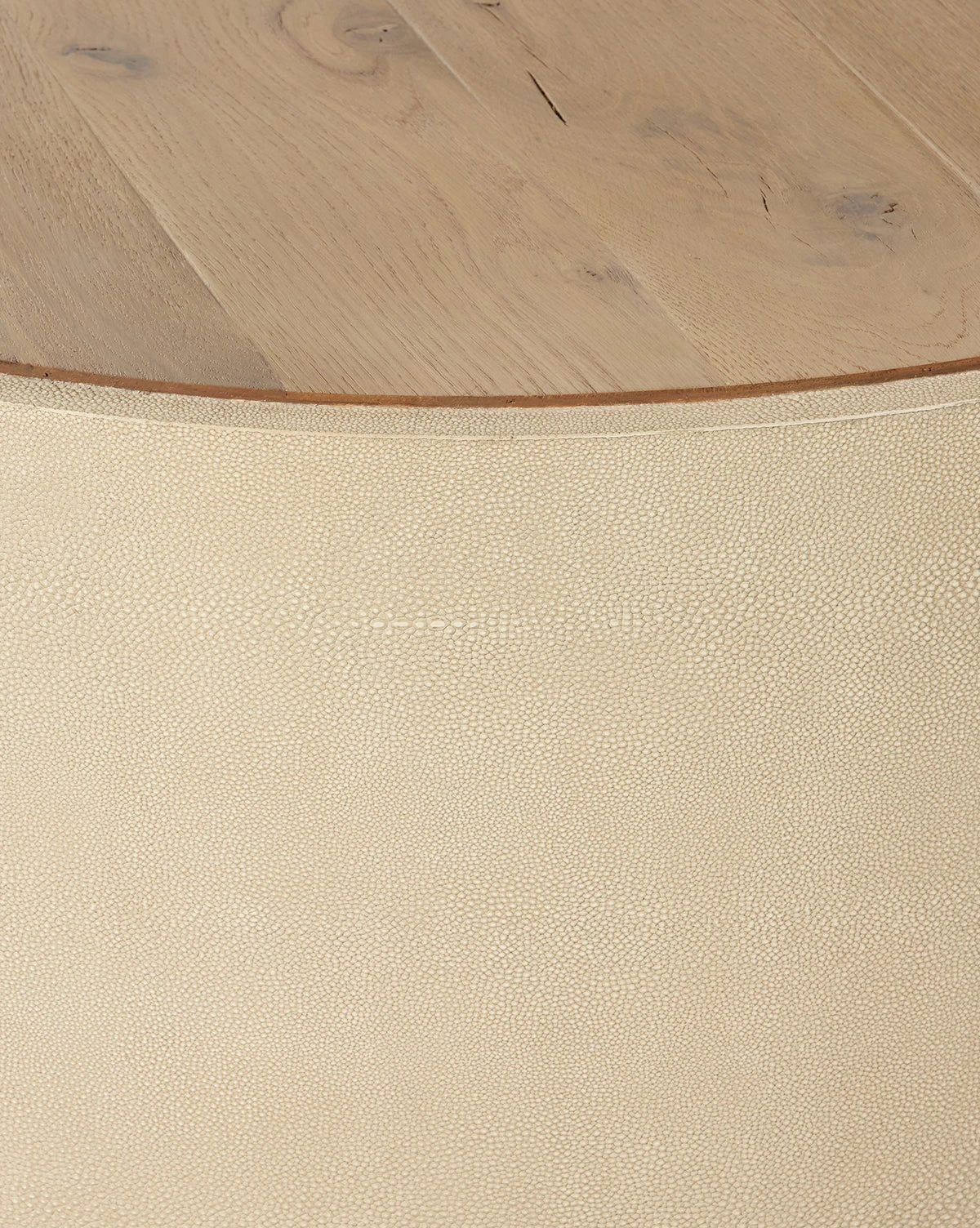 A beautiful oak tabletop with natural detail makes the Adderley Coffee Table stand out. With a round form covered in light cream shagreen, the coffee table makes a unique base for decor and entertaining.