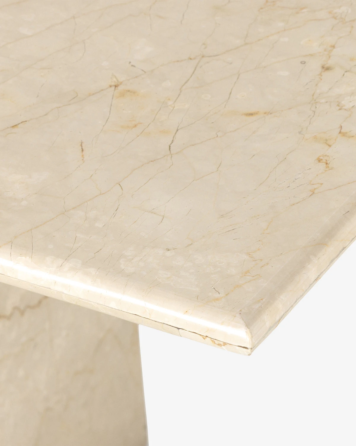 Crafted from solid cream marble, the Annalise Dining Table is both elegant and sophisticated. Its monolithic form is inspired by 1970s Italian design, bringing a smooth yet bold presence to your dining room. With subtle marbling, the table creates a versatile space for everyday tablescapes.