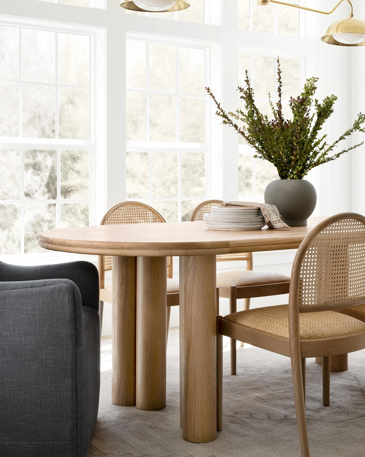 Simple details give the unpretentious Ardell Dining Table an eclectic elegance and a sculptural design. With pairs of sturdy columns forming sets of playful legs and subtle ribbed detail around the perimeter of the tabletop, this dining table plays with minimalism in a new way. Crafted from oak in a natural, smooth finish, this piece is soft to the touch and easy on the eyes.