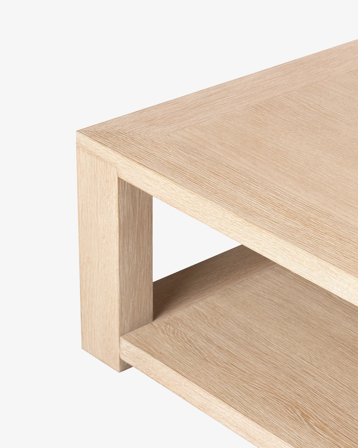 In a bleached oak finish, the Boone Coffee Table boasts a creative, contemporary design. Its architectural form adds subtle shape and dimension to your space. The natural details of the coffee table make for the perfect mix of organic and modern.