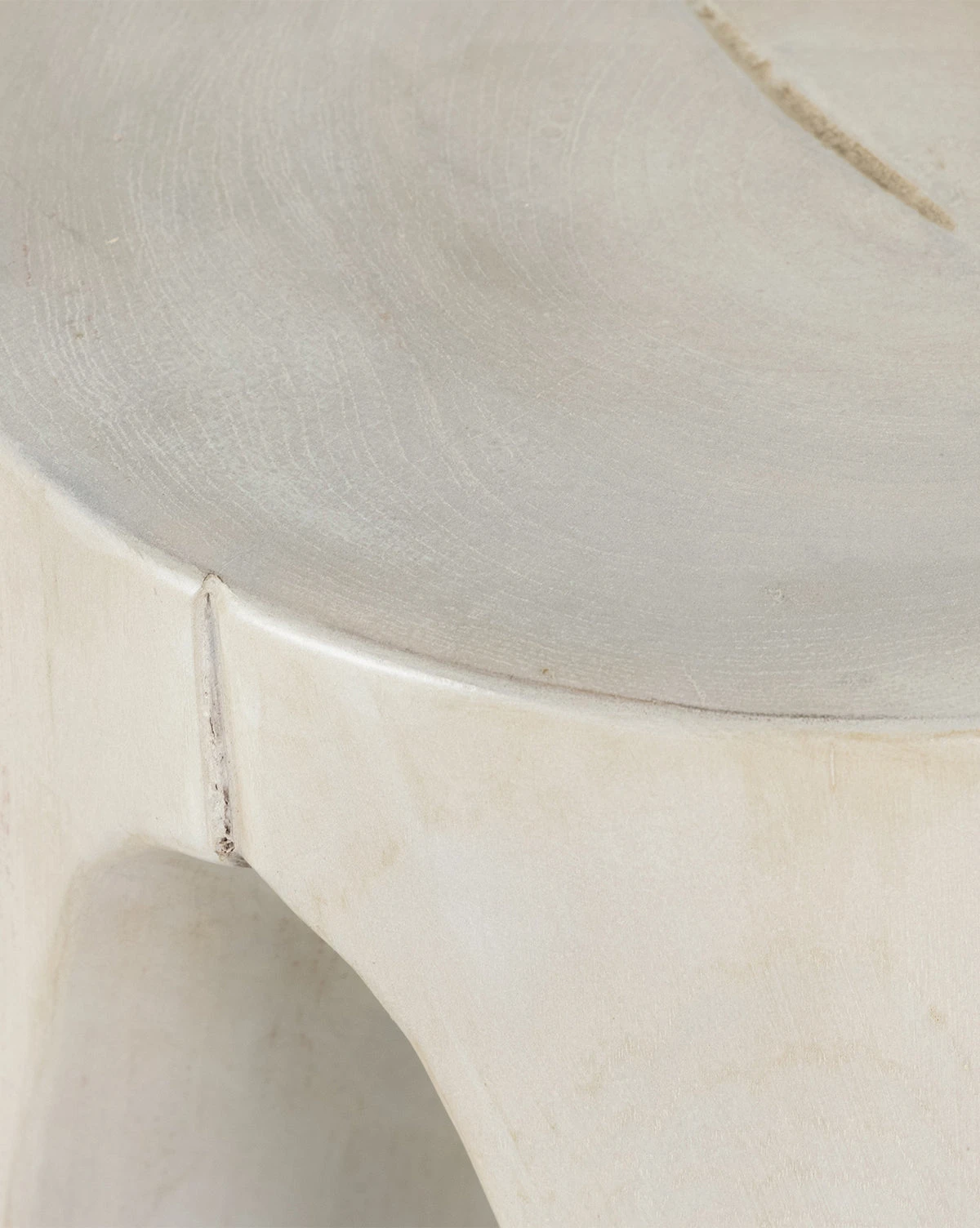 The Brena Outdoor End Table has an organic feel that celebrates its sculptural form. With a three-leg design and three available finishes, every table exaggerates its wood grain and texture for a touch of organic design in a modern take on natural material.