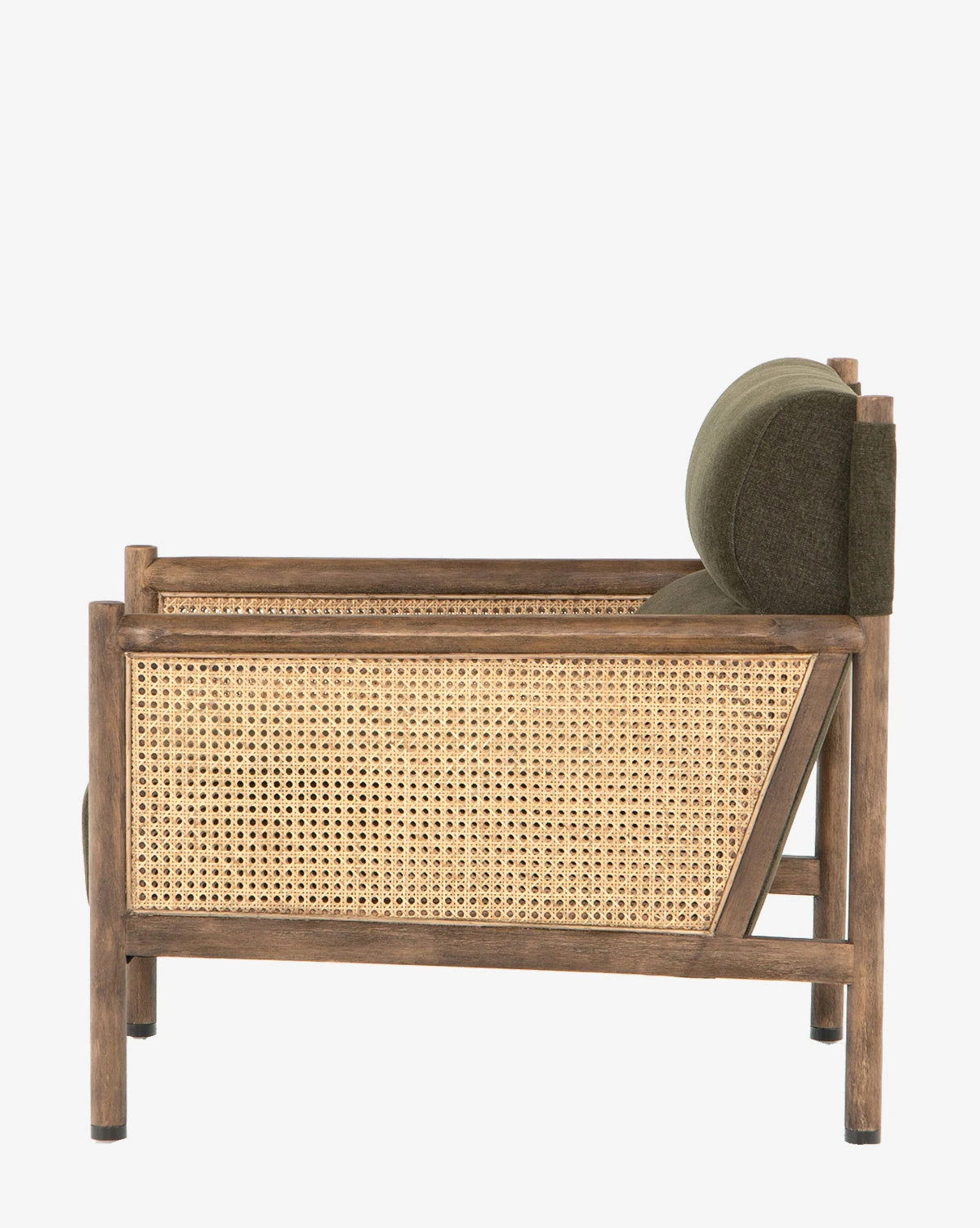 Crafted with a keen attention to detail, and inspired by Parisian design, the Channing Lounge Chair creates a moment of depth and dimension wherever it’s placed. With comfortable textures and inviting hues, its high performance-upholstered seat is perfectly positioned for comfort alongside the woven natural cane and stunning parawood frame.