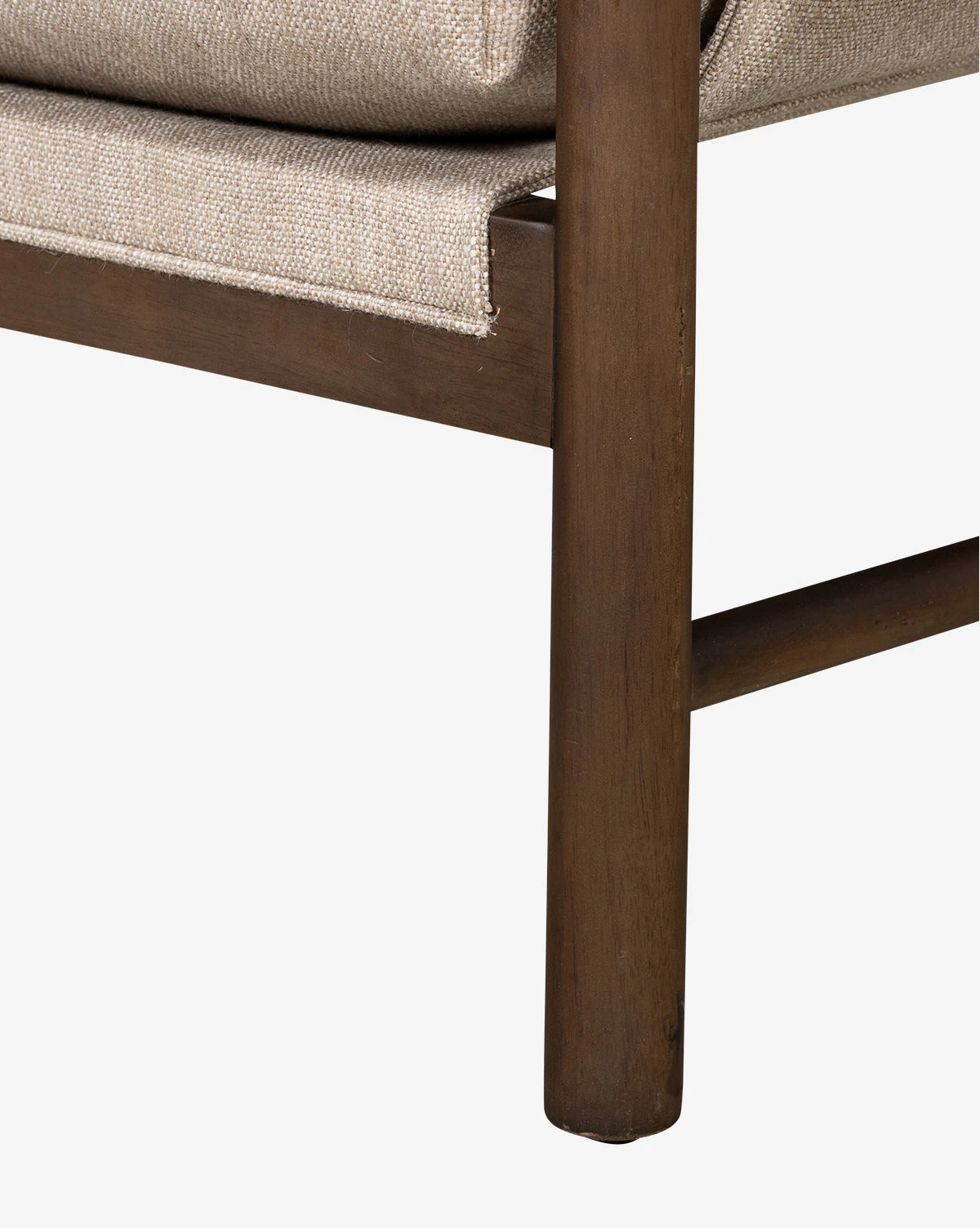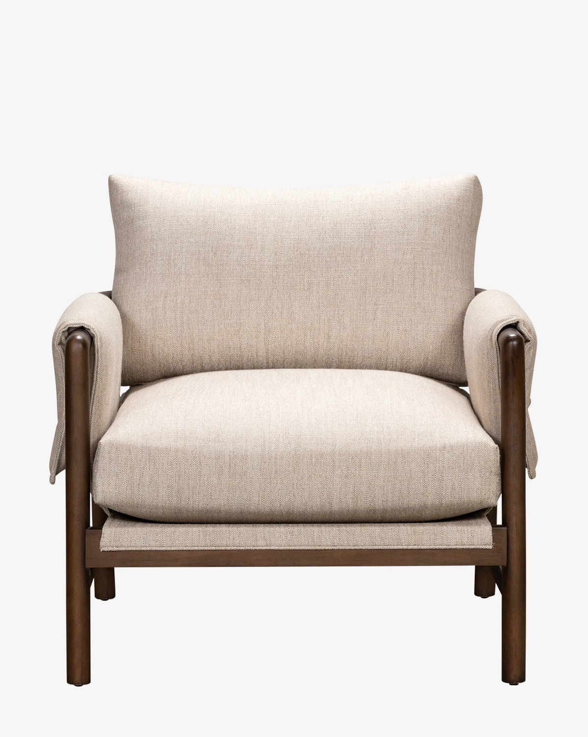 From the plush cotton-blend upholstery to the vintage-inspired parawood frame, the Demarco Lounge Chair brings the best of both form and function to your living space. Luxuriously comfortable, this chair is all about the details with wrapped arms and faux toggles, all completed in one of two warm, neutral finishes.