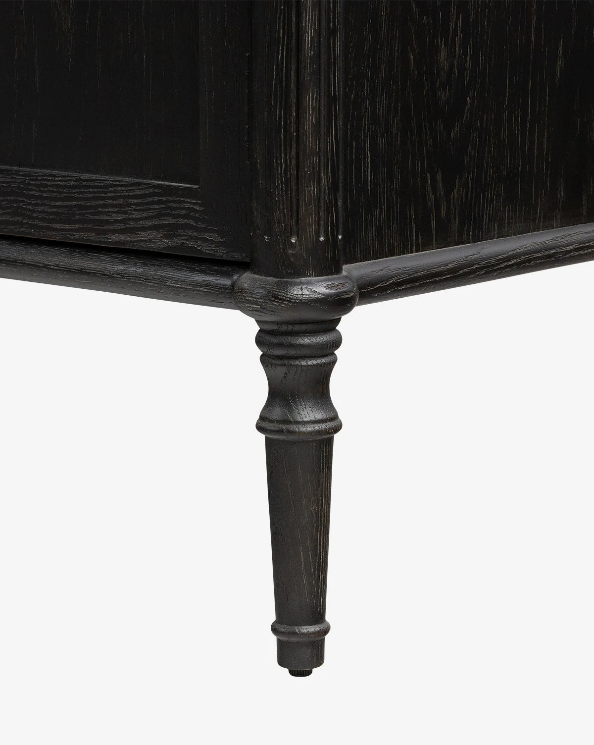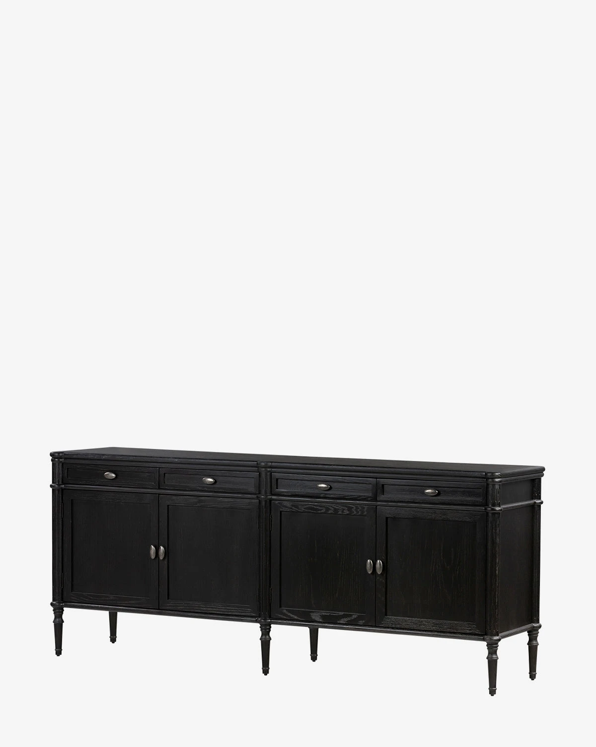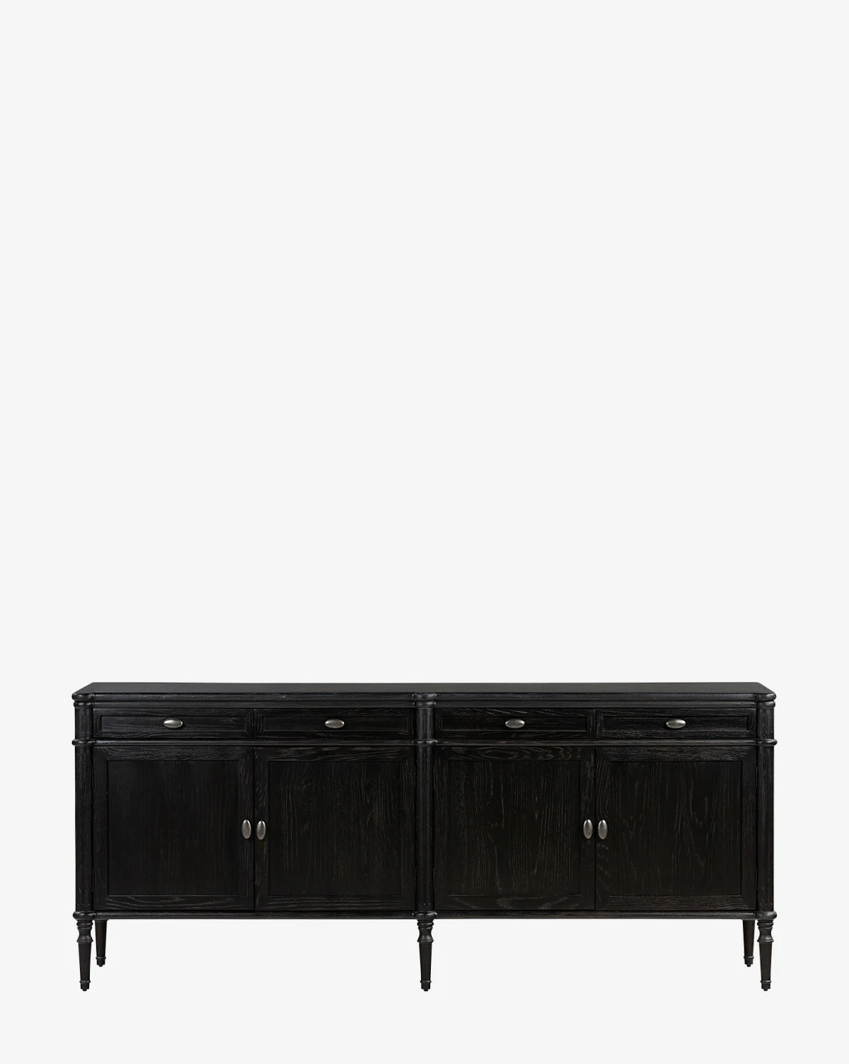 The compelling but relaxed design of the Dixon Sideboard elevates your space with its nuanced details. Made from oak in either a toasted or distressed black finish, the sideboards stately form holds top drawers and enclosed storage with aged brass hardware.
