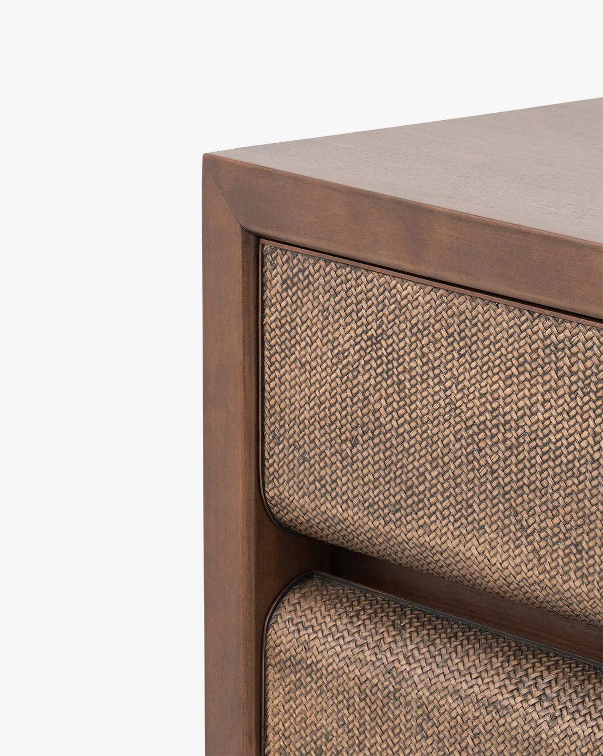 Crafted from walnut veneer, the Dobrev Dresser beautifully mixes materials in a creative design. The unique structure of the drawers elevates the presence of this warm dresser, with the dark frame contrasted by the inset woven rattan on the drawers.