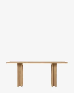 With a modern and geometric design, the Ernie Dining Table is crafted from solid mango wood in a natural finish. The rectangular tabletop rests on a shapely base, bringing a subtle contemporary feel to your dining room.