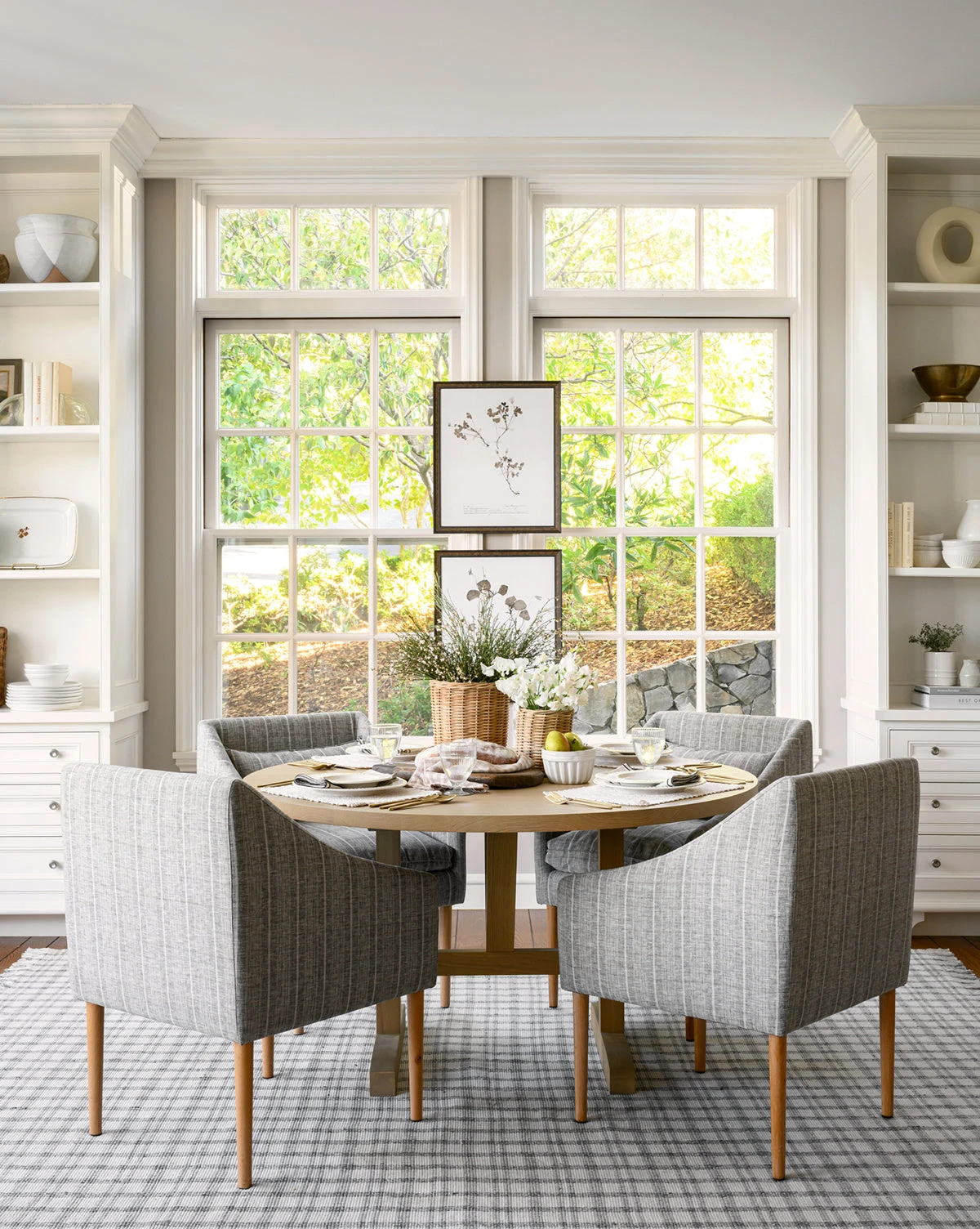 Smooth curves and beautiful craftsmanship take center stage in our Giselle Round Dining Table. Constructed from kiln-dried white oak, this table brings both form and function to your dining space with its architectural shape. Inspired by the traditional round table, the top features a play on mortise and tenon joinery above the legs on either end. Whether hosting formal dinners or enjoying everyday family time, this piece stands the test of time as it grows with your family from memory to memory.