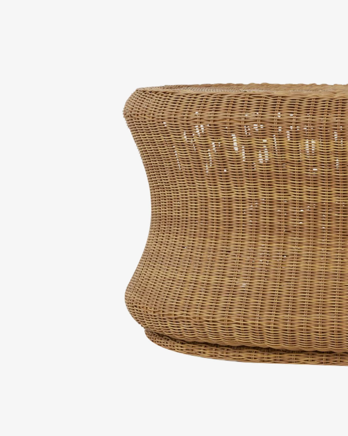 The Goldfield Coffee Table is crafted from faux wicker around a metal frame with a light honey finish creating an organic look and feel. In a soft rounded shape that highlights the intricate detail of its construction, this coffee table effortlessly anchors your outdoor furniture.