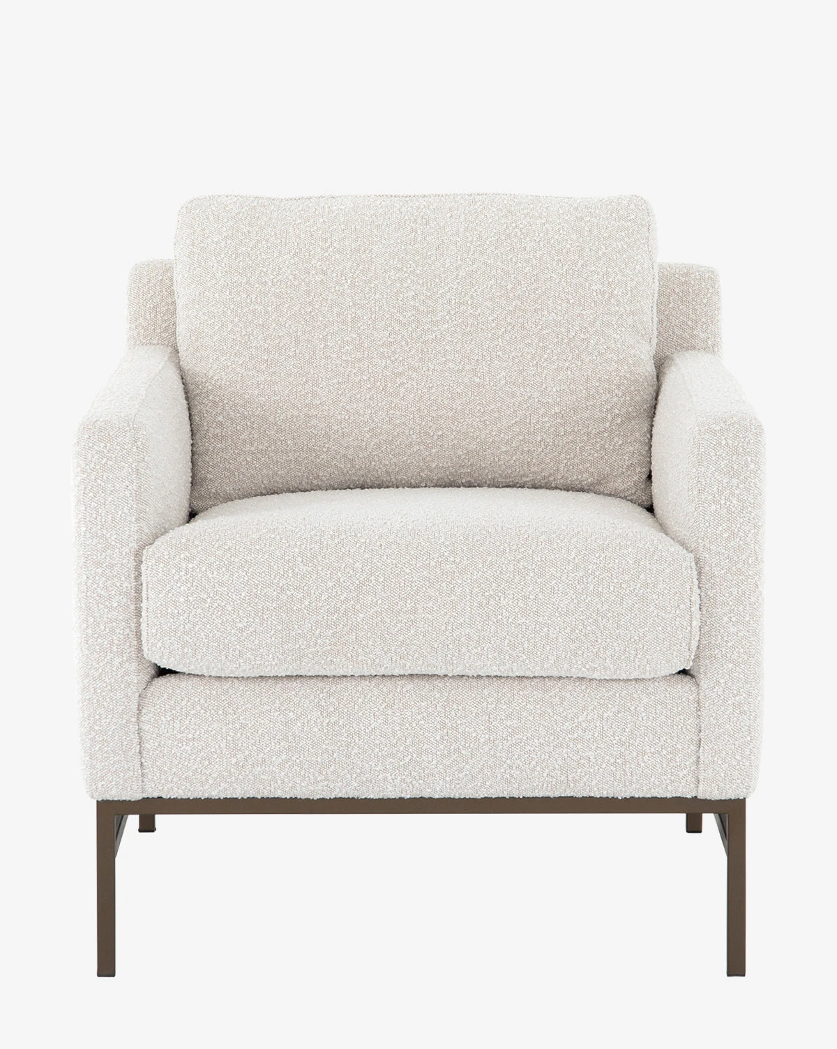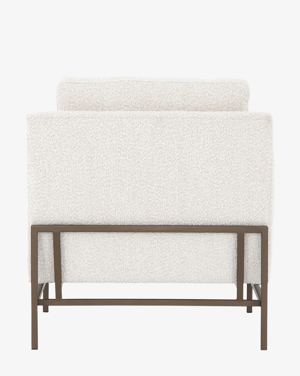 Plush and luxurious, the Ivan Lounge Chair is a modern take on the traditional armchair. Its upholstered fabric cushions are thick and soft, and supported by bronze-finished iron base that adds a balanced mix of material.