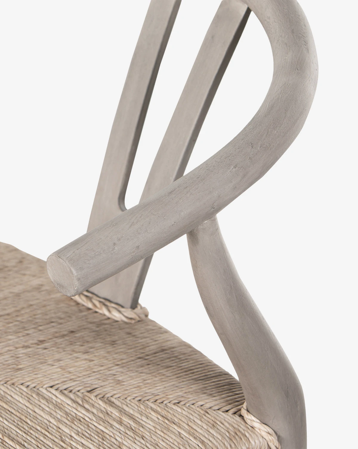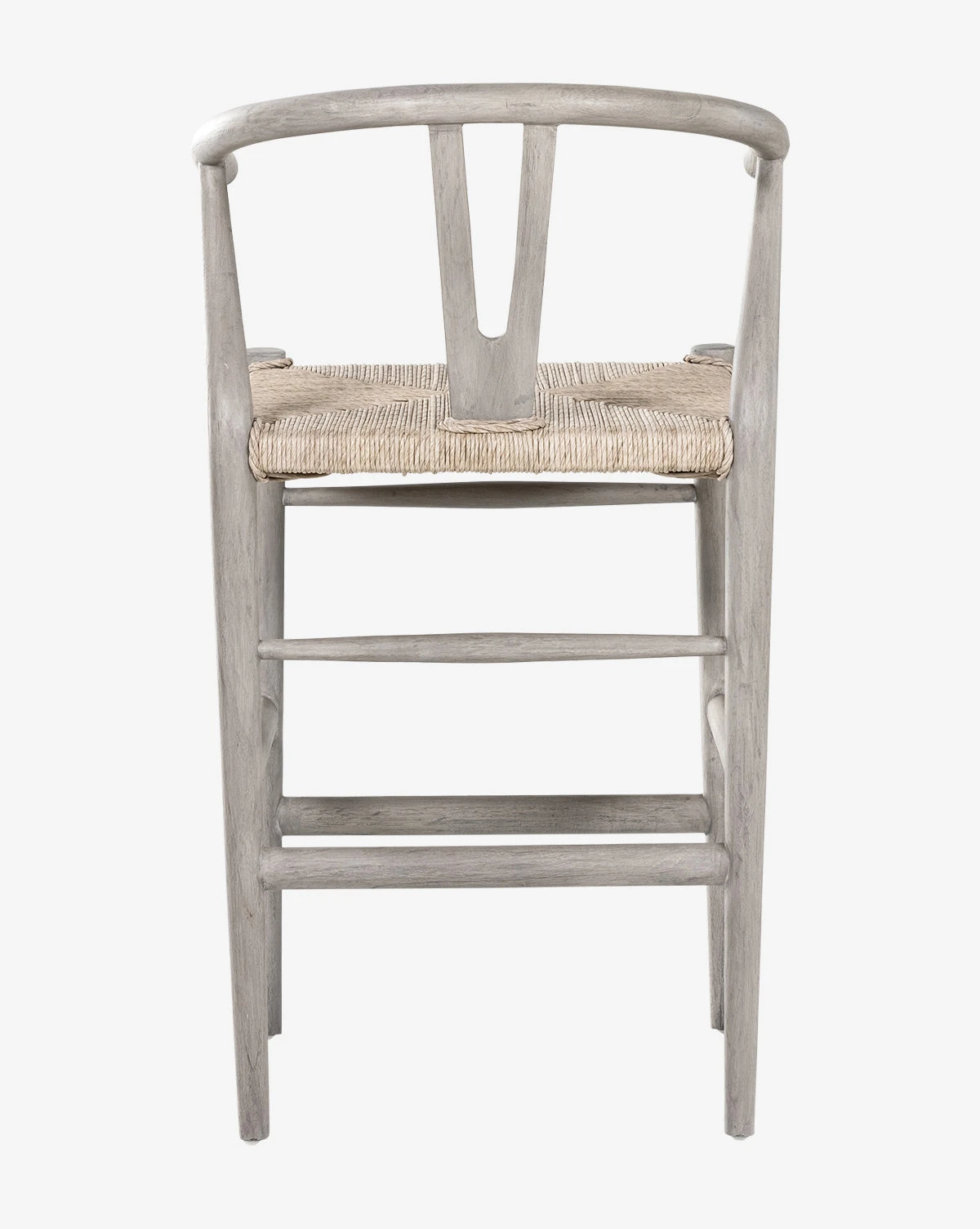 With a wishbone style back and modern curves, the teak-framed Jasper Stool makes a statement wherever it’s placed. Horizontal bars bring visual dimension to its base, as a woven wicker seat adds refined texture, finishing off the design.