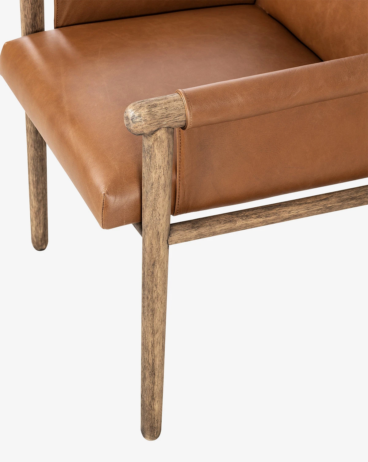 The Kolton Armchair’s midcentury-inspired dowel frame holds a seat upholstered in top grain leather. The sling arms provide a sophisticated sense of comfort, while the camel colorway brings warmth to your styling.