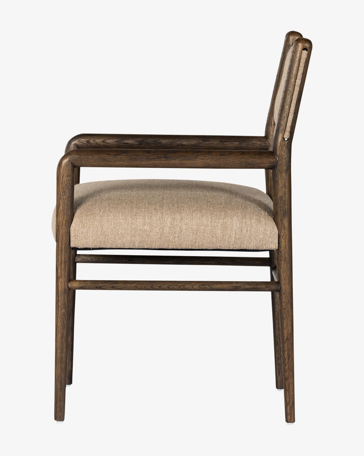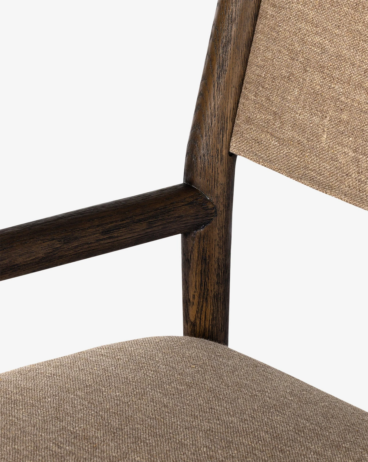 Artfully designed in a deep, rich brown, the Leila Armchair is an updated take on the classic sling-back armchair. Its seat and back are upholstered in textured performance fabric, giving the chair a timeless appeal that brings grace to your living spaces.