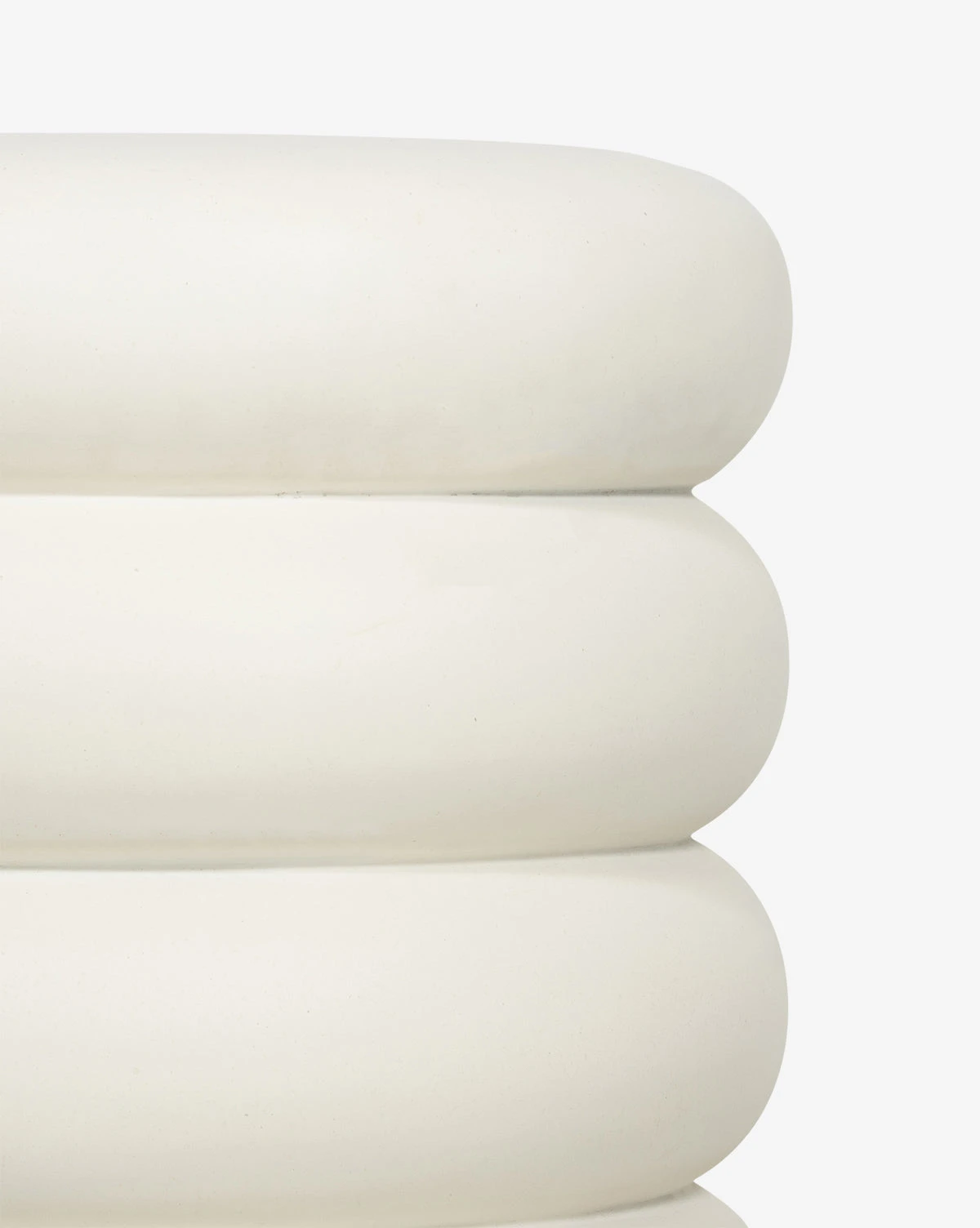 In a neutral, ivory colorway, the Livingston End Table is shapely and bright. Made of solid concrete finished with a light clay, the modern and sculptural feel creates a focal point and foundation for styling in a living room or office.