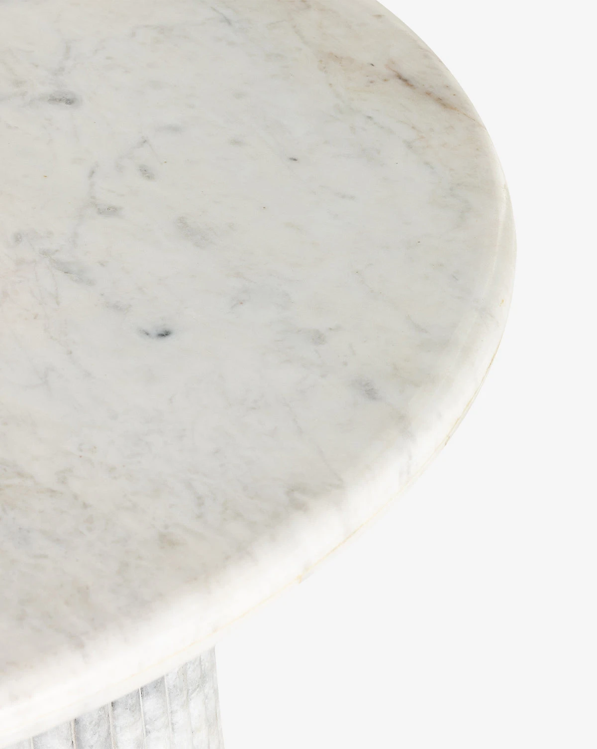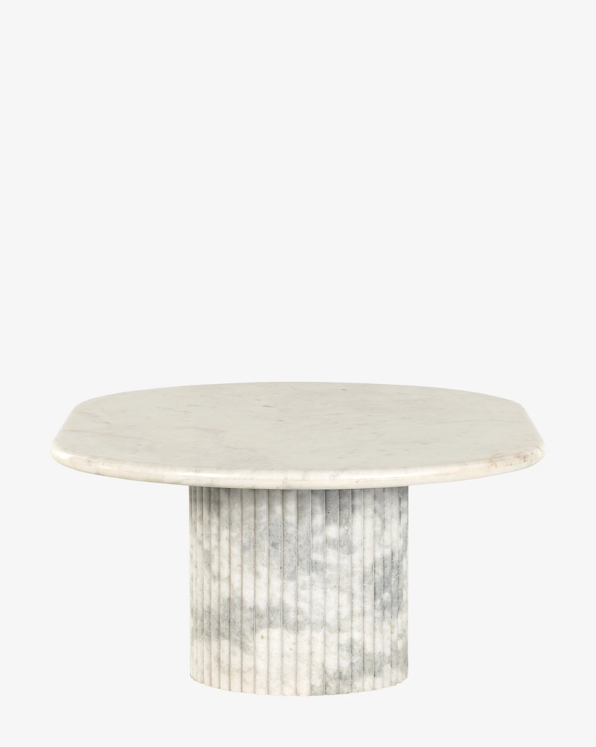 Sculptural and visually weighty, the Malvern Coffee Table is crafted from solid marble. With fluted details on the legs, the natural marbling adds organic detail and character to both the base and the oval tabletop.