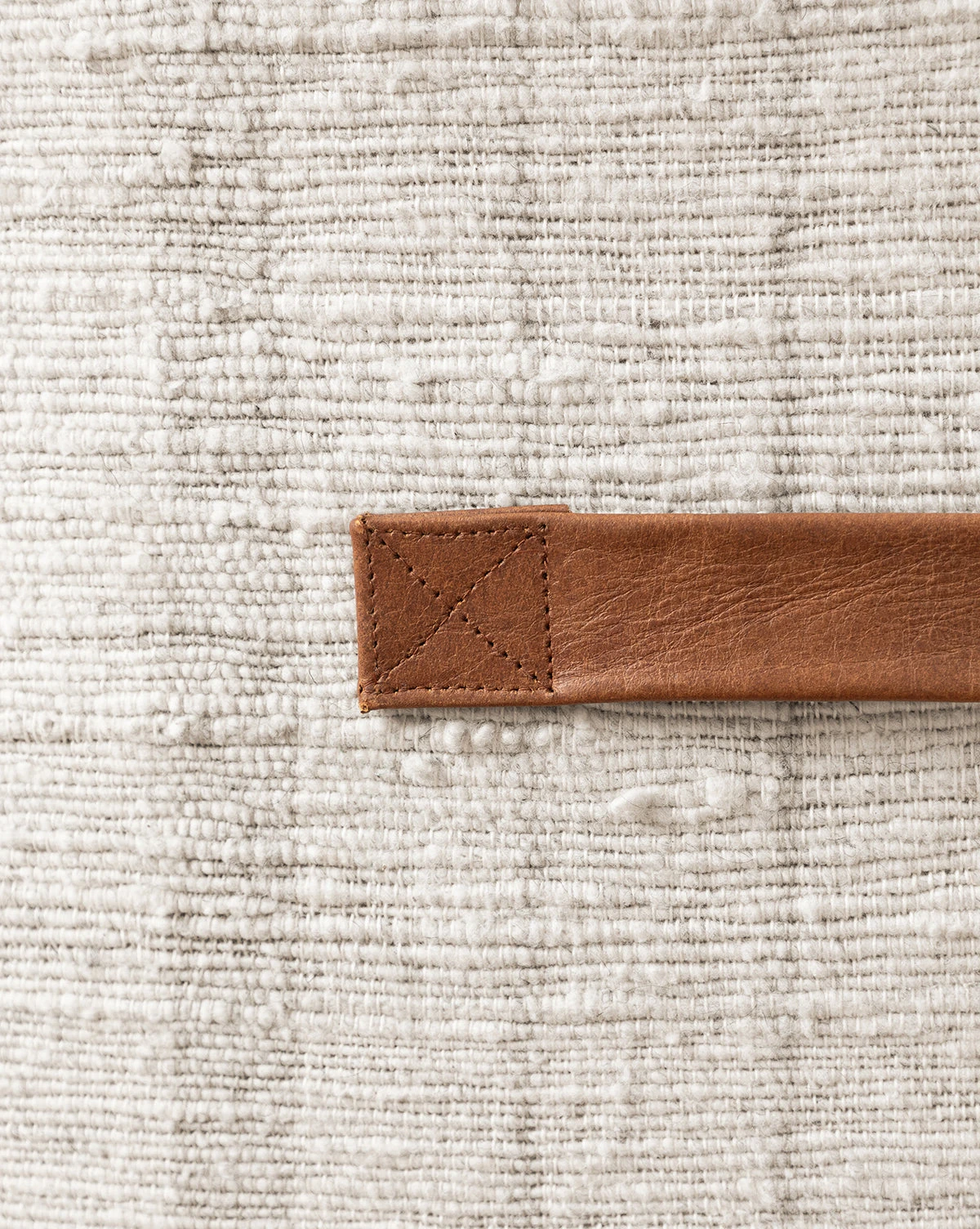 Soft stripes give the McKay Round Ottoman a classic style and visual interest. In a palette of muted gray and cream, this simple ottoman gives nod to traditional fabric ottomans while elevating its overall design with thoughtful attention to its craftsmanship. Small leather additions give added detail to the McKay Round Ottoman, creating a nuance of mixed textures and styles.