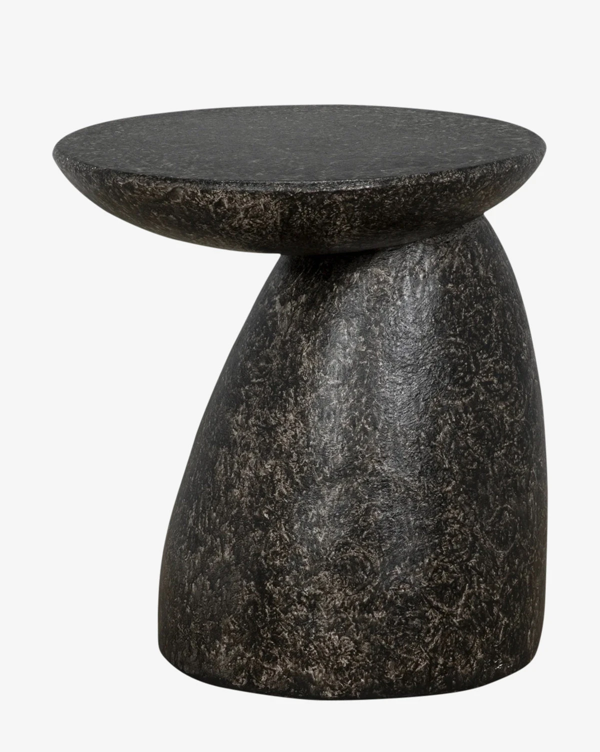 The texture and tone of the Doyle Side Table are highlighted through its sculptural design. Playing with shape, the abstract-looking piece is made from black fiber cement, lending dimension and unique detail to your living space.