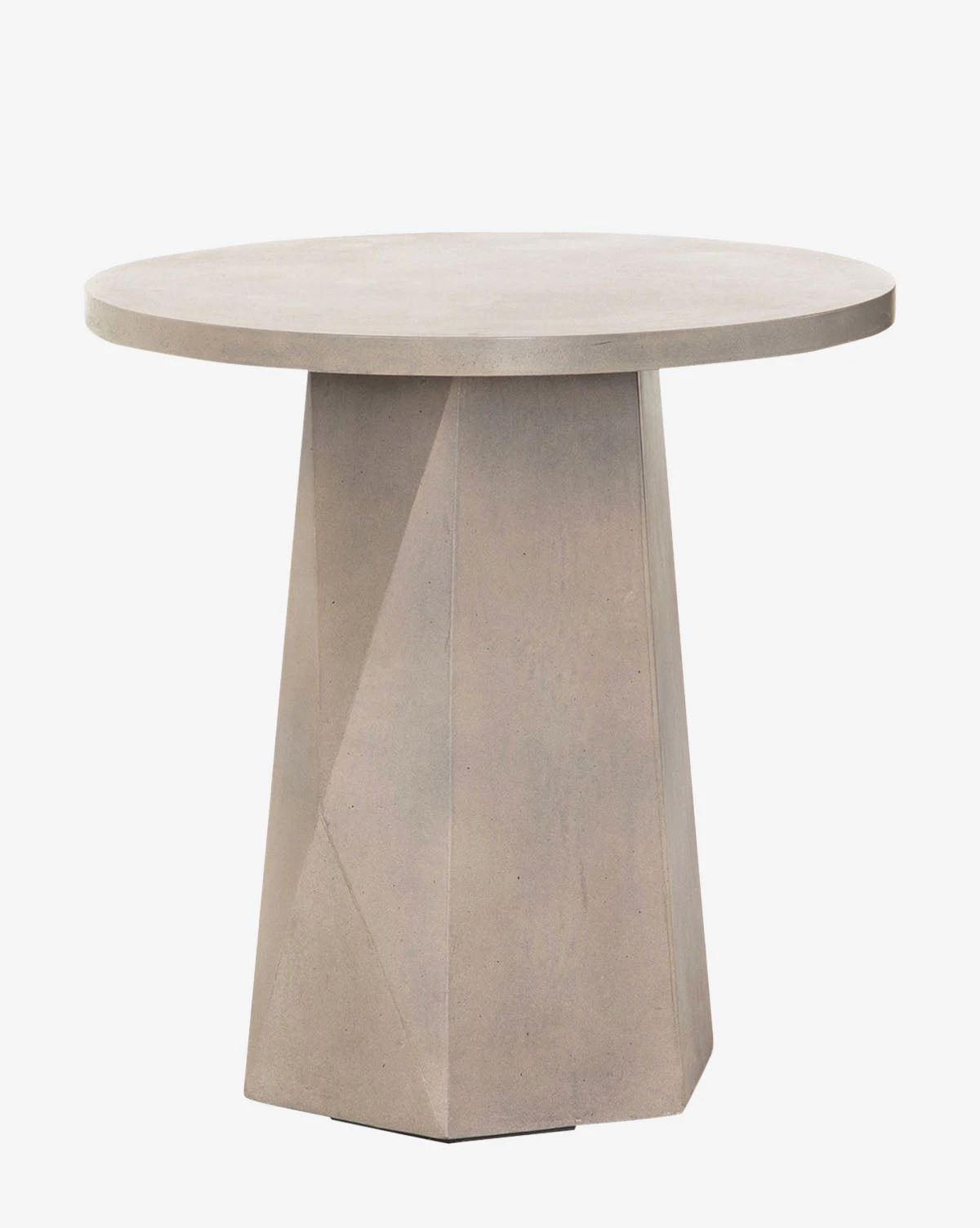 Lending both form and function to your indoor or outdoor living space, the gray concrete of the Patton Outdoor Side Table blends seamlessly with your existing design. With its rounded top and angular, faceted base, this table is ready to make an organic statement.
