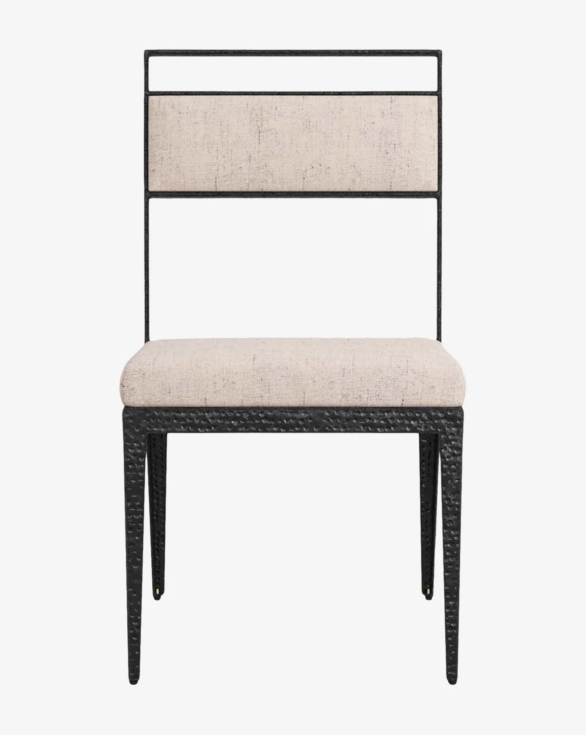 Artfully designed with a forged, blackened iron frame, the Pitman Chair brings subtle beauty to the dining table. Complete with a linen upholstered seat and seat back, the streamlined structure has a timeless appeal.