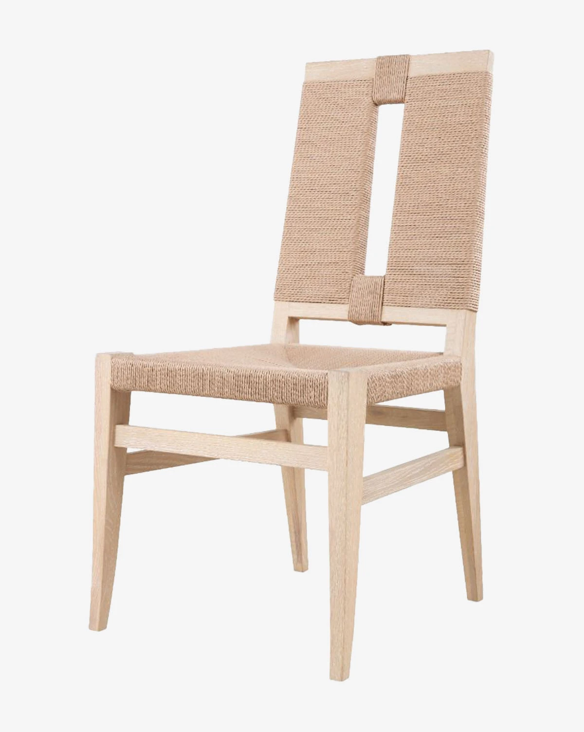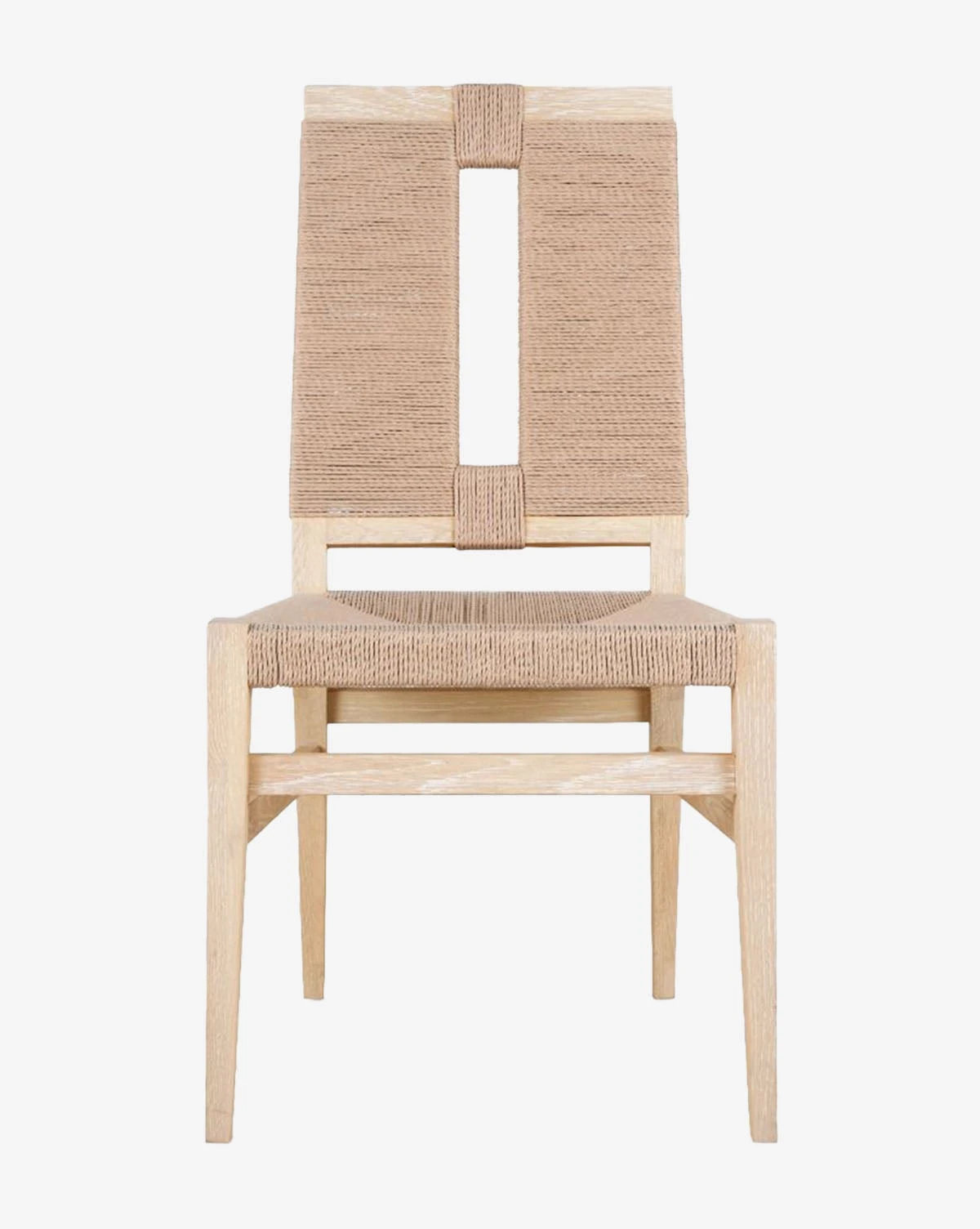 With a unique frame made of bleached cerused oak, the Ruby Dining Chair was designed with attention to detail. Its handwoven rope seat provides organic texture and an approachable element to the sleek dining chair.