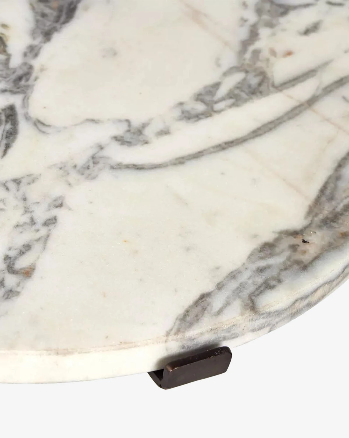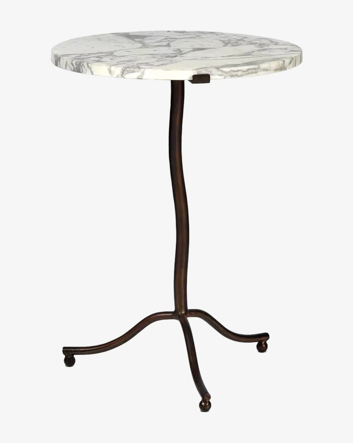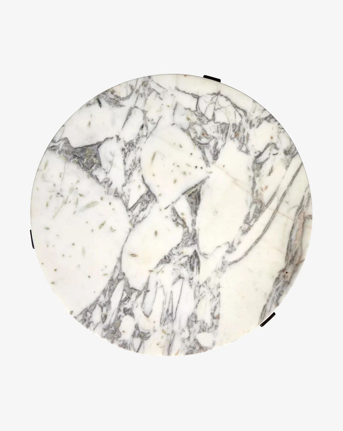 Make a statement with the stunning material mix of the Rumaan End Table. Crafted from iron with a solid white marble tabletop, this table is ideal for styling next to a sofa or lounge chair.