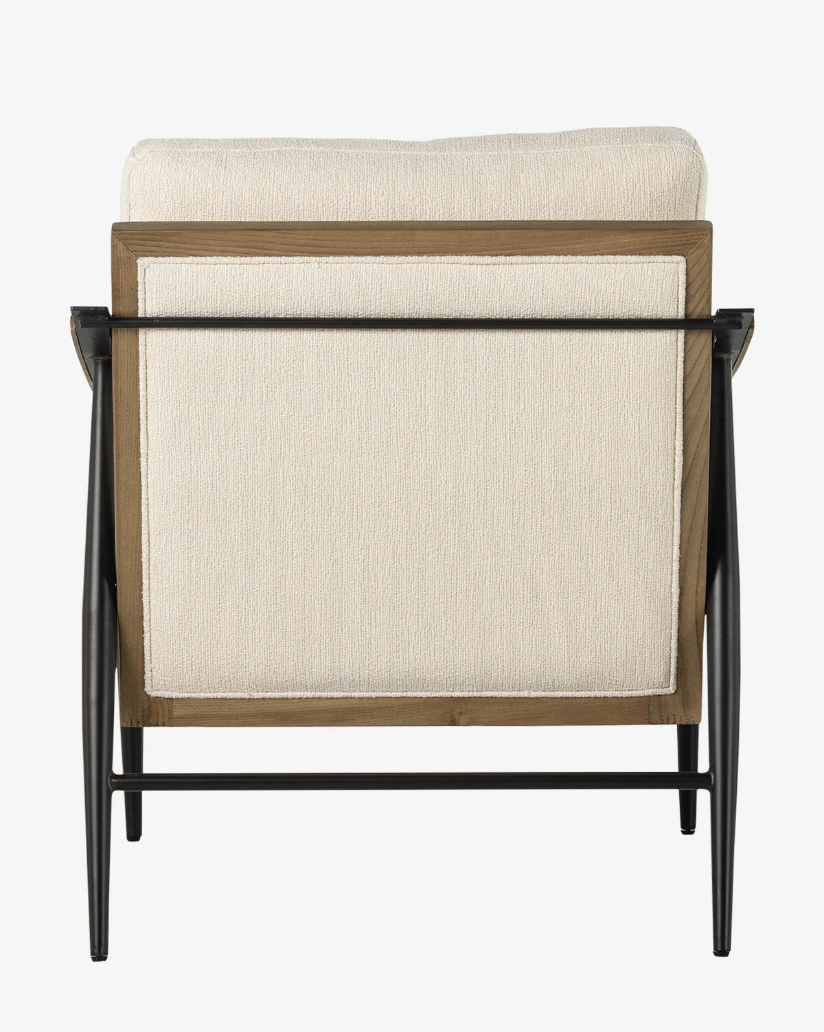 Crafted from a masterful mix of materials, the Wallace Chair is the epitome of comfort meets style. From the sloped wooden arms to the gunmetal finished legs.