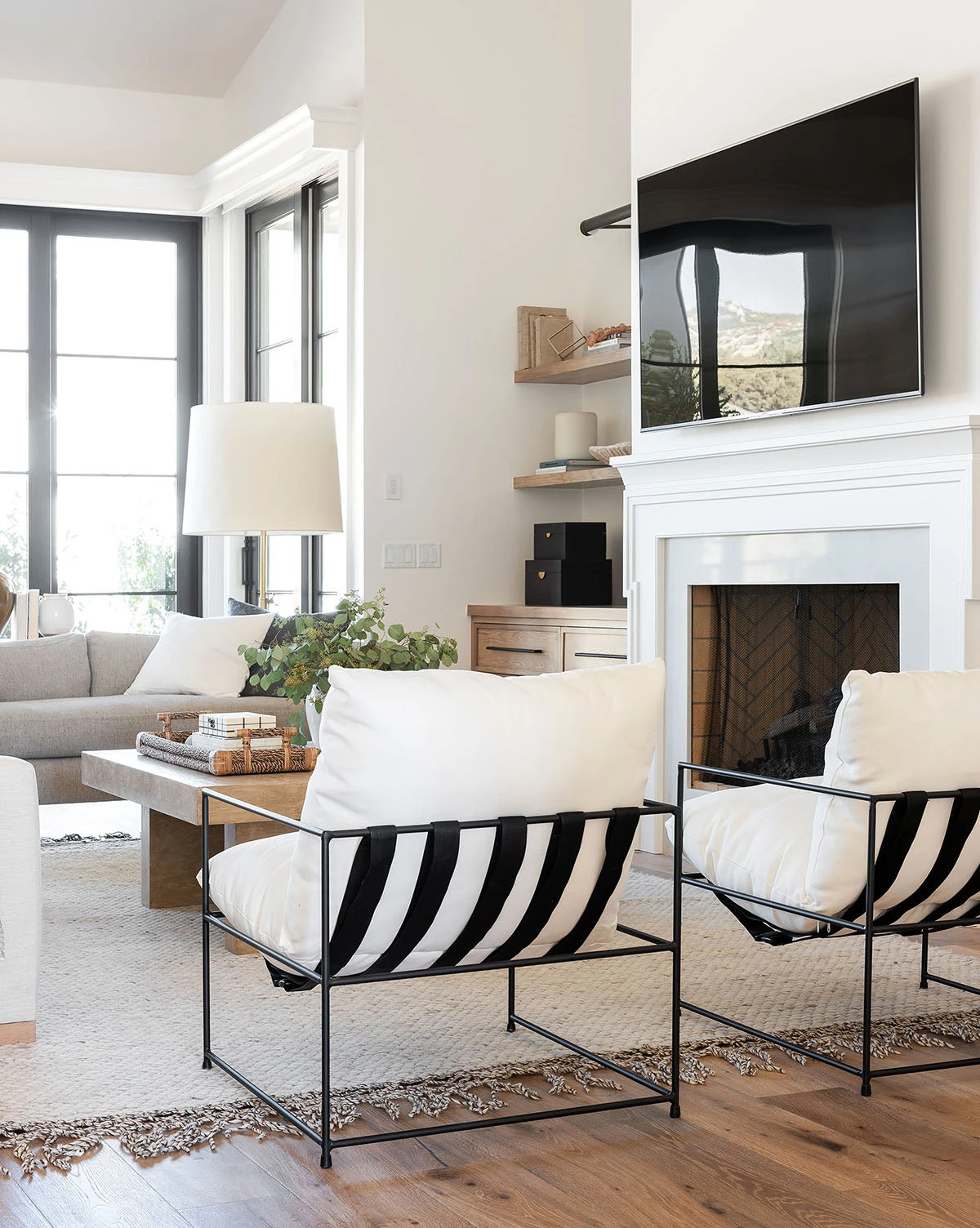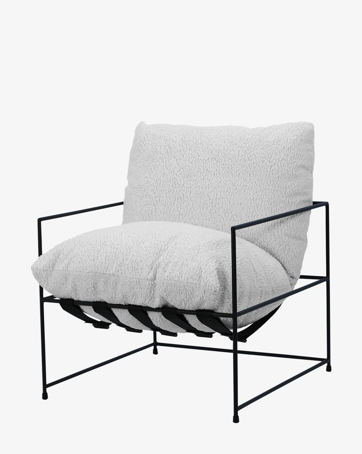 The Yates Chair is as aesthetic as it is comfortable. Its open, black metal frame cradles its cushions, giving an airy feel to this contemporary design. With off-white, performance fabric upholstered cushions that are deep and relaxed, the Yates Chair has a comfortable feel and modern style.